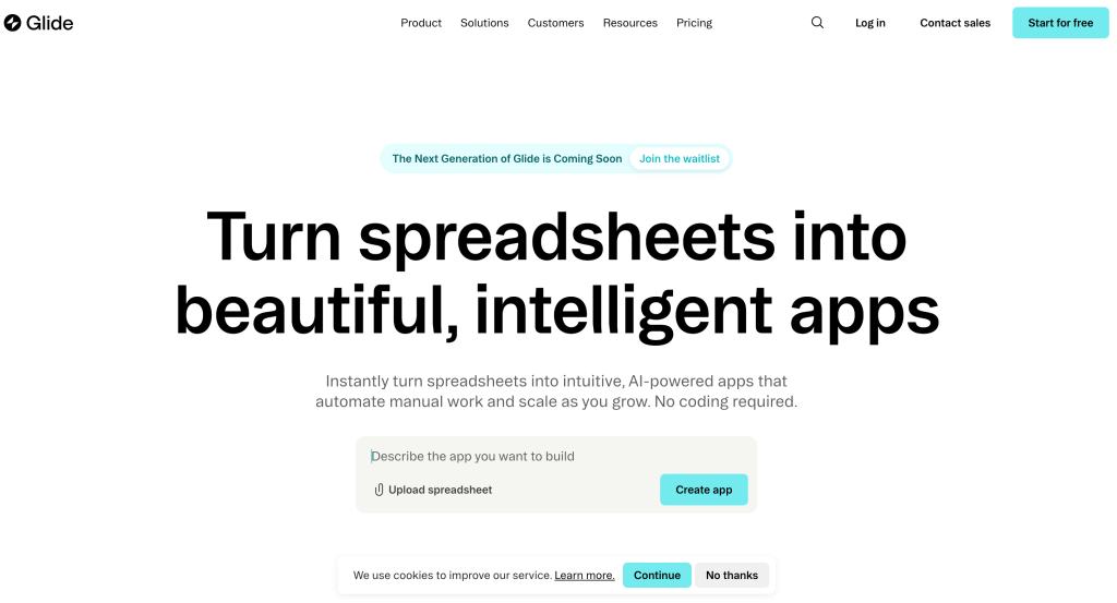 Glide Spreadsheet-based tools Extremely fast to launch Not ideal for full SaaS