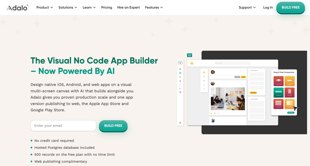 Adalo Fast mobile MVPs Simple path to mobile creation Better for simpler products